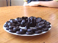 LAZY Sweet carob treats: As above, but do not soak the almonds. VERY LAZY and VERY Sweet carob treats: As above, but use 2 c walnuts (no almonds), 40 dates (instead of 20) and a good handful of raisins, and process it all together. Nice and crunchy. Brownies: As above, but a different shape ha ha ha! You know what I mean, naturally. :) *** In 2004, as I become more sensitive to various toxins in foods, I discovered that cocoa is a powerful stimulant, which negatively affects my sleep. I recommend that you use carob. ![]() Carob chewies: Process in a food processor